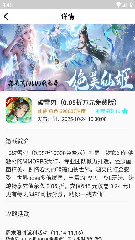 低门槛操作+精准推荐的使用友好度:界面简洁直观,核心功能(游戏查找、攻略查看、福利领取)入口清晰,新手注册后即可快速上手;系统会根据玩家游戏偏好(如常玩仙侠类)精准推荐同类游戏与攻略,减少无效浏览,提升使用效率。