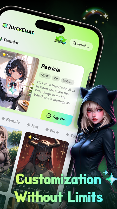 1、从角色外观到内在人格,均可由用户一手打造,满足每个人对理想伴侣或伙伴的幻想。