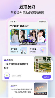 蘑合公社app是一款主打“兴趣社交+同城活动”的年轻群体专属社交平台,整合兴趣圈子、同城组局、动态分享等功能,覆盖骑行、露营、美食打卡等多元场景,适配追求新鲜社交体验、渴望结识同好的年轻用户,尤其方便同城用户线下互动。