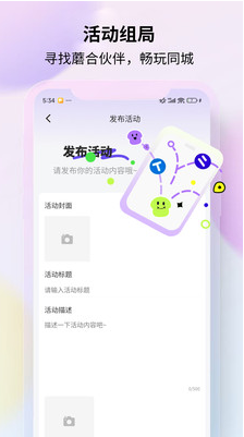 同城活动与组局内容:聚焦本地生活场景,实时更新同城活动,活动详情标注时间、地点、参与人数与专属福利;同时支持用户自主发布活动,从封面设计、标题到活动描述均能自定义,满足个性化组局需求。