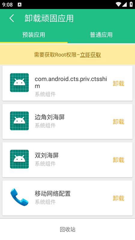 3、支持卸载系统预装应用、顽固应用及部分系统组件。