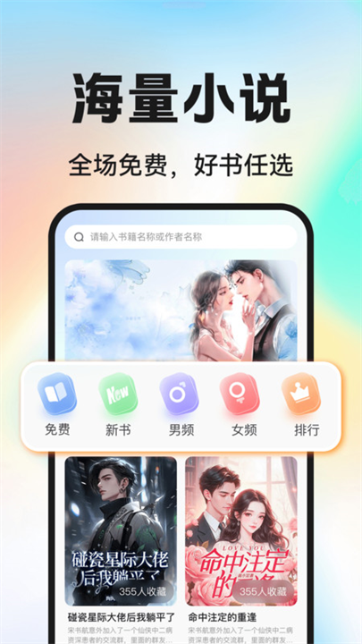 精准分类与搜索功能:首页按“新书”“男频”“女频”“排行”分类,方便用户快速定位偏好内容;设有搜索栏,支持按书籍名称或作者名精准查找,同时提供“热播榜”“新品榜”“飙升榜”等榜单,直观展示热门作品(如3.5万人收藏的《被读心后,高冷陆少时恋爱脑》),解决“选书难”问题。