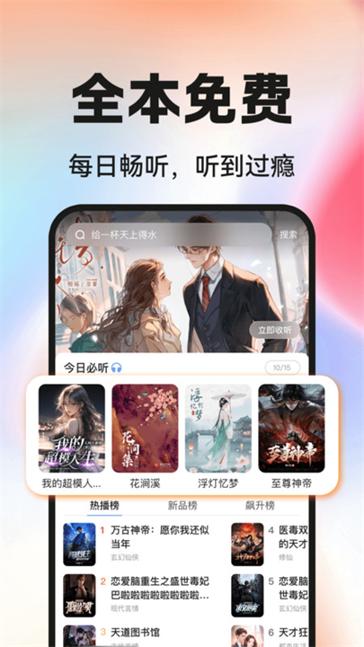 全免费+零广告干扰的纯净体验:区别于部分阅读软件“免费但广告密集”的模式,该软件全程无强制广告,阅读与听书过程不被弹窗、视频广告打断;且所有内容零付费,无论是热门榜单作品还是每日上新短篇,均无需充值即可使用,降低用户阅读成本。