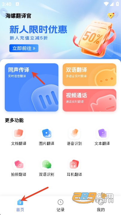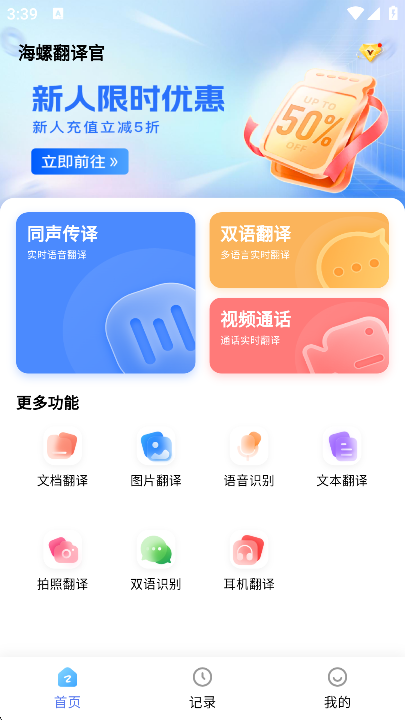 登录后,用户们可以使用同声传译,即实时语音翻译功能