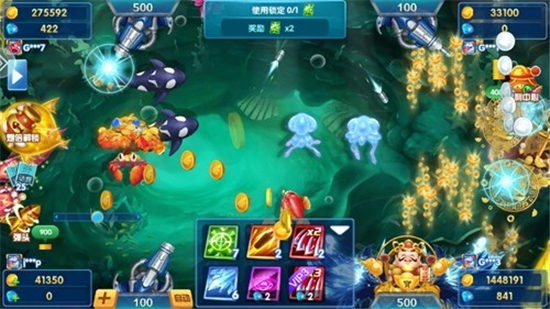 游戏中经常会出现爆炸鱼、特殊戟等特殊鱼种,每种特殊鱼被捕获时均会拥有不同的特效以及特殊功能。比如,爆炸鱼击杀后会有爆炸特效,可100%击杀一定范围内的鱼群,获得丰厚奖励,金币哗啦啦的进入您的口袋。而特殊戟击杀后,虽然没有金币奖励,但是您会获得一个特殊的炮台,并且在80秒内可以免费发射,您可以在密集鱼群到来之后,先捕获一个特殊戟,然后就盯着鱼群猛然发起特殊戟攻击,助您一举拿下鱼群。不过,这些鱼种都是比较难捕获一点的,如果不看自己金币数量和鱼类的位置而乱打一气,这样肯定是比较容易消耗金币的。