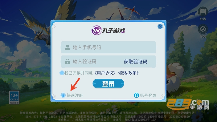 进入游戏,新玩家直接点击“快速注册”登录注册游戏账号