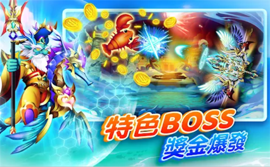 结合娱乐城风格的华丽特效,金币四溅、炮火炫目,每一次射击都伴随着强烈的视听冲击,仿佛置身于深海中的梦幻游乐园。