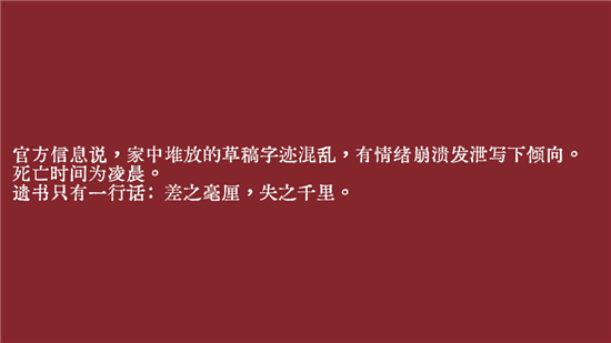 现场是一个密闭空间,留有遗书(打印纸),指出因工作压力巨大而选择轻生,警方以自杀结案。