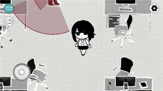 3、通过左下角虚拟摇杆控制角色移动,需要避开NPC视野(红色扇形区域),在合适的位置放置窃听器。