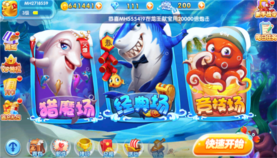 多个场次选择,不同倍率切换,BOSS震撼来袭,做真正的捕鱼达人